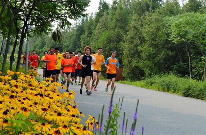 为使更多跑友能够加入训练营,参与训练,提高成绩,本期“创•赛道”2014北京马拉松训练营适当放宽了招募条件。参与本期活动的跑友中,有久经“马道”历练的精英跑者,也有初次完成全程马拉松的菜鸟级跑者。大家在北京马拉松训练营总教练田玉桥和5位专业助教的带领下,按不同配速分组完成了不同圈数的缓坡变速跑。奥森仰山步道长约600米,坡度从5度上升到25度左右,跑坡过程中,充分锻炼跑友的大、小腿肌肉,提高腿部力量和体能耐力。田玉桥教练表示,每周1次缓坡变速跑,将助力跑友在金秋到来的北京马拉松赛场上提高心肺功能,提升上坡速度,增强意志力,以获取更好的马拉松成绩。